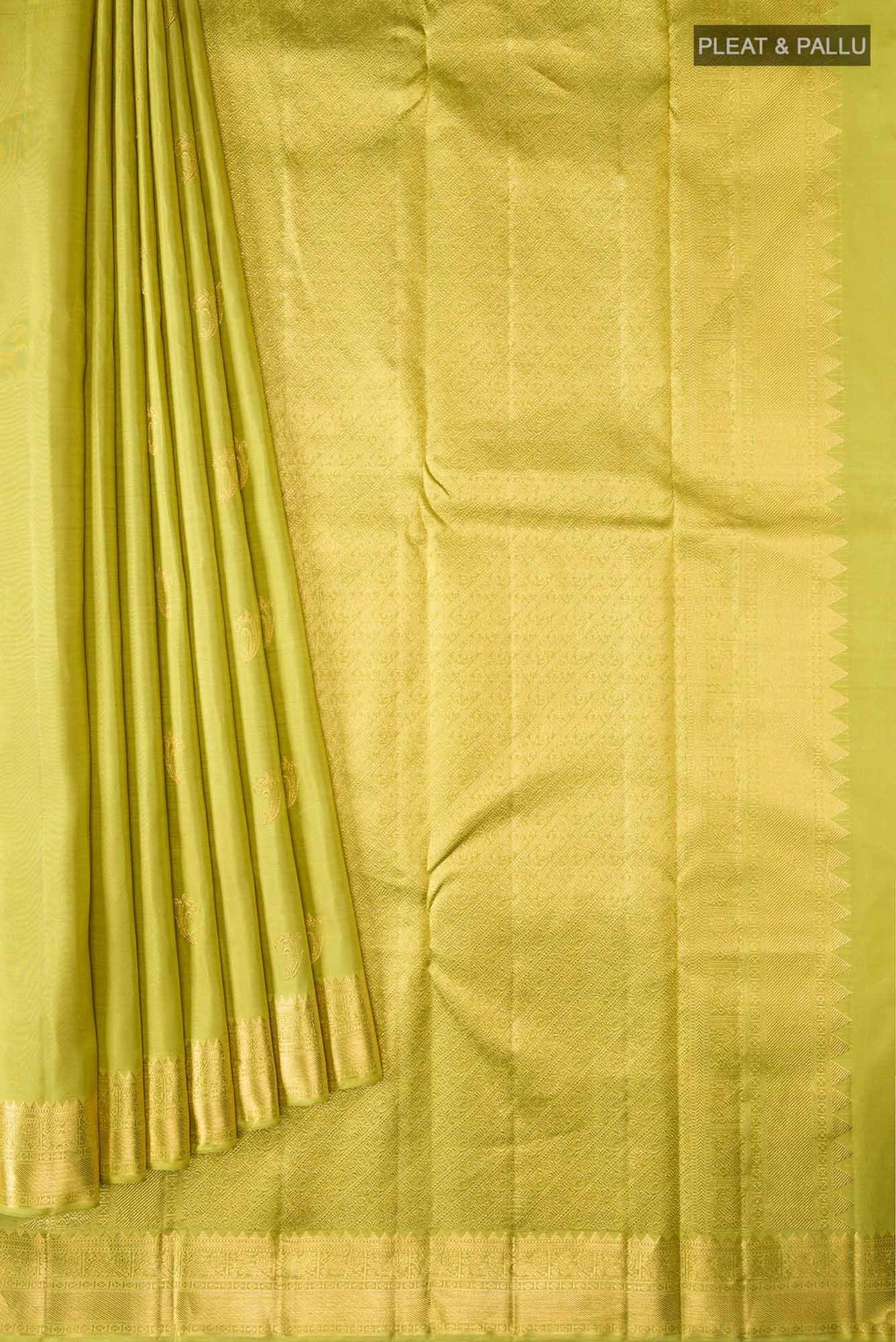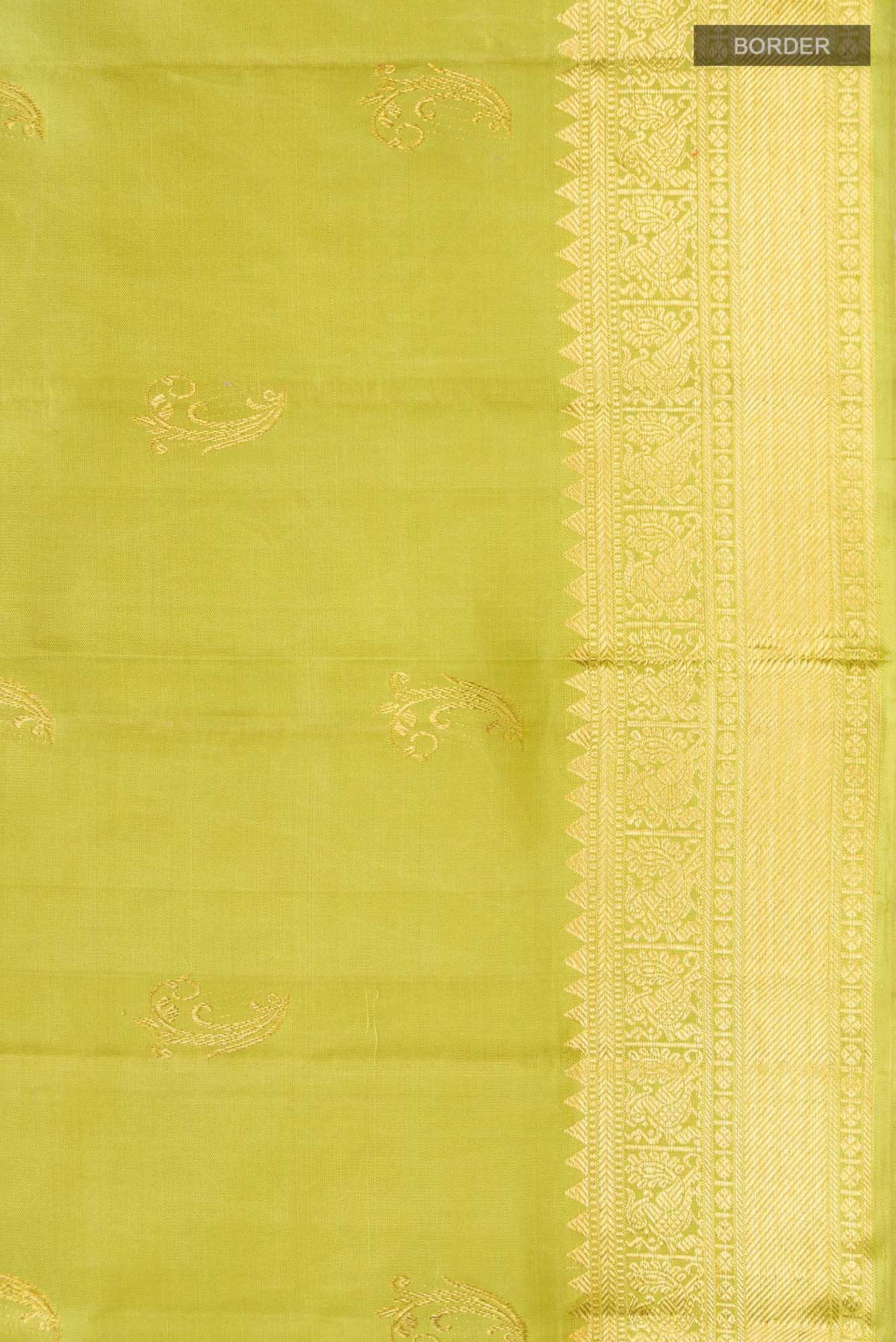 Pure Silk Pure Zari Green Kanchipuram Saree with Zari Butta on the body and Zari Border. (Includes unstitched blouse)