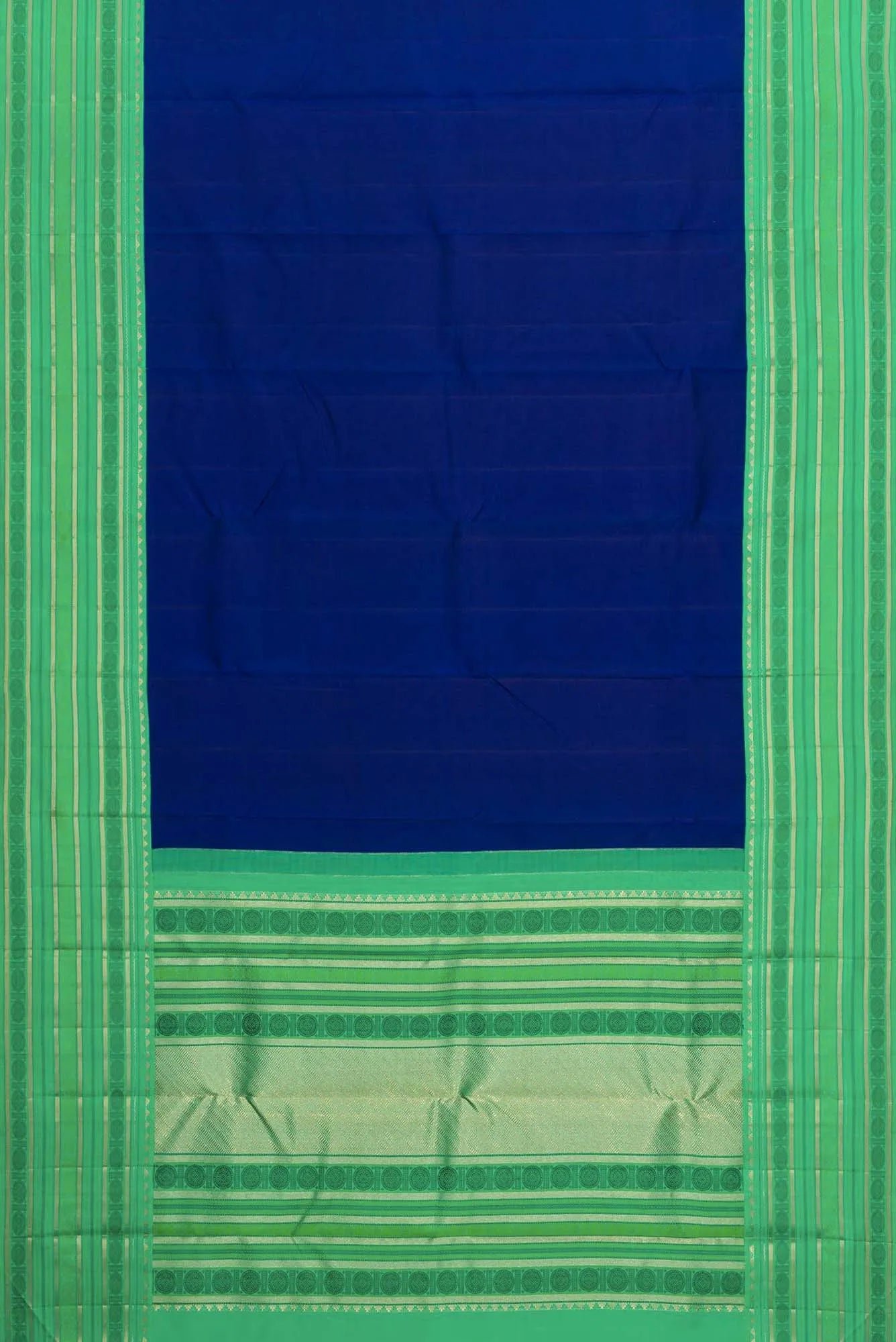 Pure Silk Pure Zari Royal Blue Dual Tone Kanchipuram Saree with Plain Body and Zari And Thread Border. (Includes unstitched blouse)